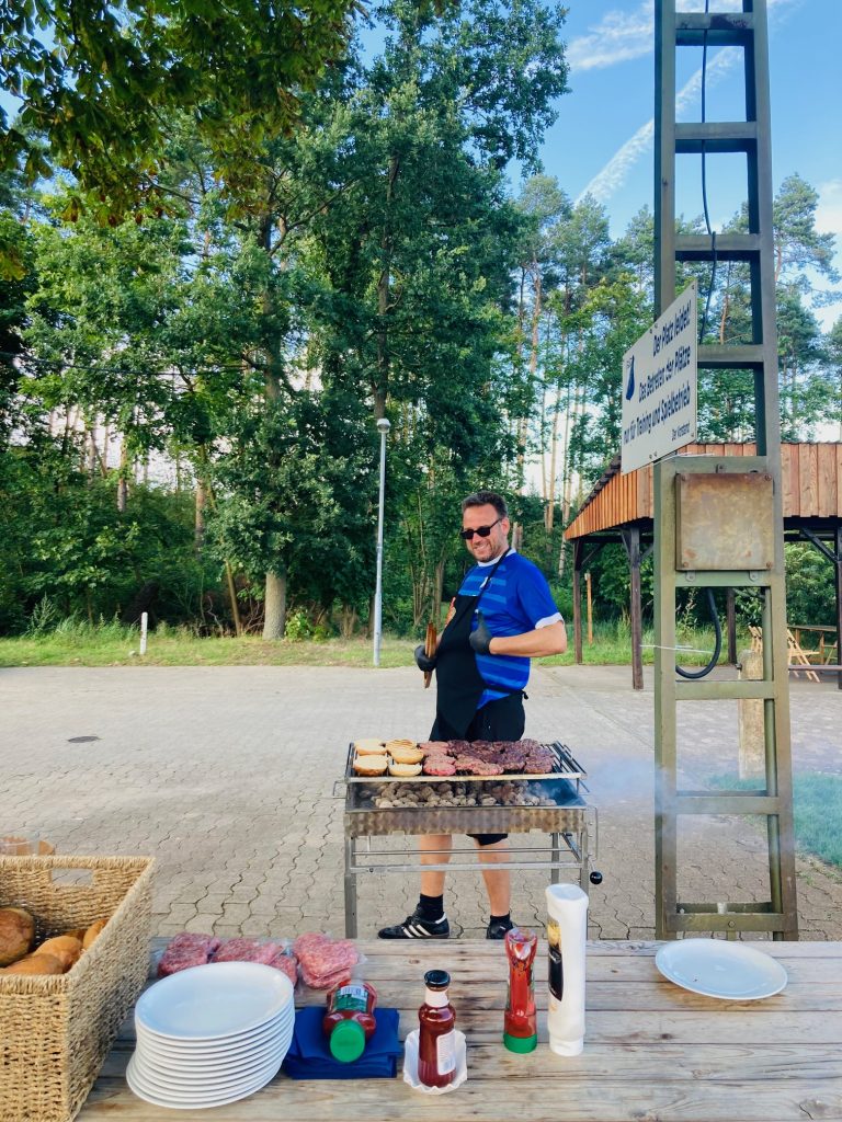 Bei besten Wetterbedingungen wurden die Besucher und Fans mit frischen Spezialitäten vom Grill verwöhnt. Fördervereinsvorstand Roman Koch, seines Zeichens Chefgriller, bewies einmal mehr seine Künste am Rost und begeisterte alle Anwesenden mit leckeren Köstlichkeiten.