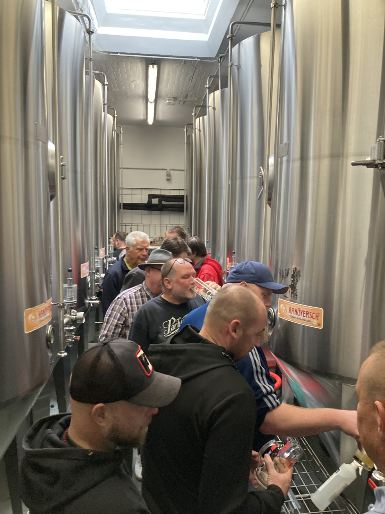 Schon die Anreise hatte ihren eigenen Charme: Vom Bahnhof aus ging es zu Fuß durch die historische Altstadt Hannovers, bevor wir im Brauhaus eintrafen. Dort erwartete uns niemand Geringeres als unser ehemaliger 1. Herren-Spieler und heutiger Braumeister Fabian Horschig.